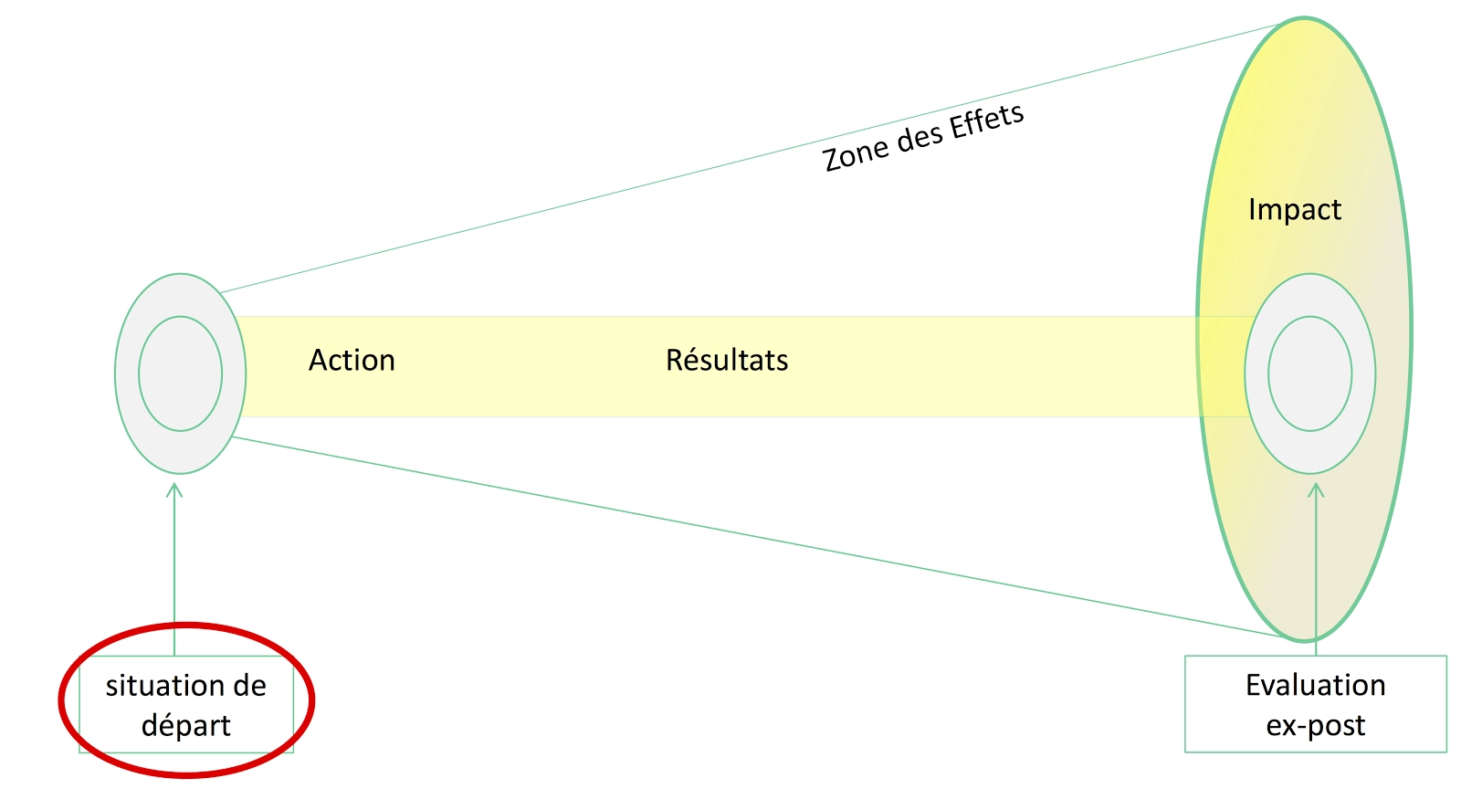 - Il s’agit d’une démarche inductive, permettant d’observer l’impact réel, à travers la comparaison des indicateurs en début et fin de projet (situation de départ vs. situation finale), qui permet de mesurer des écarts (évolution, différences) et des dynamiques (permet de se projeter, prolonger une tendance).