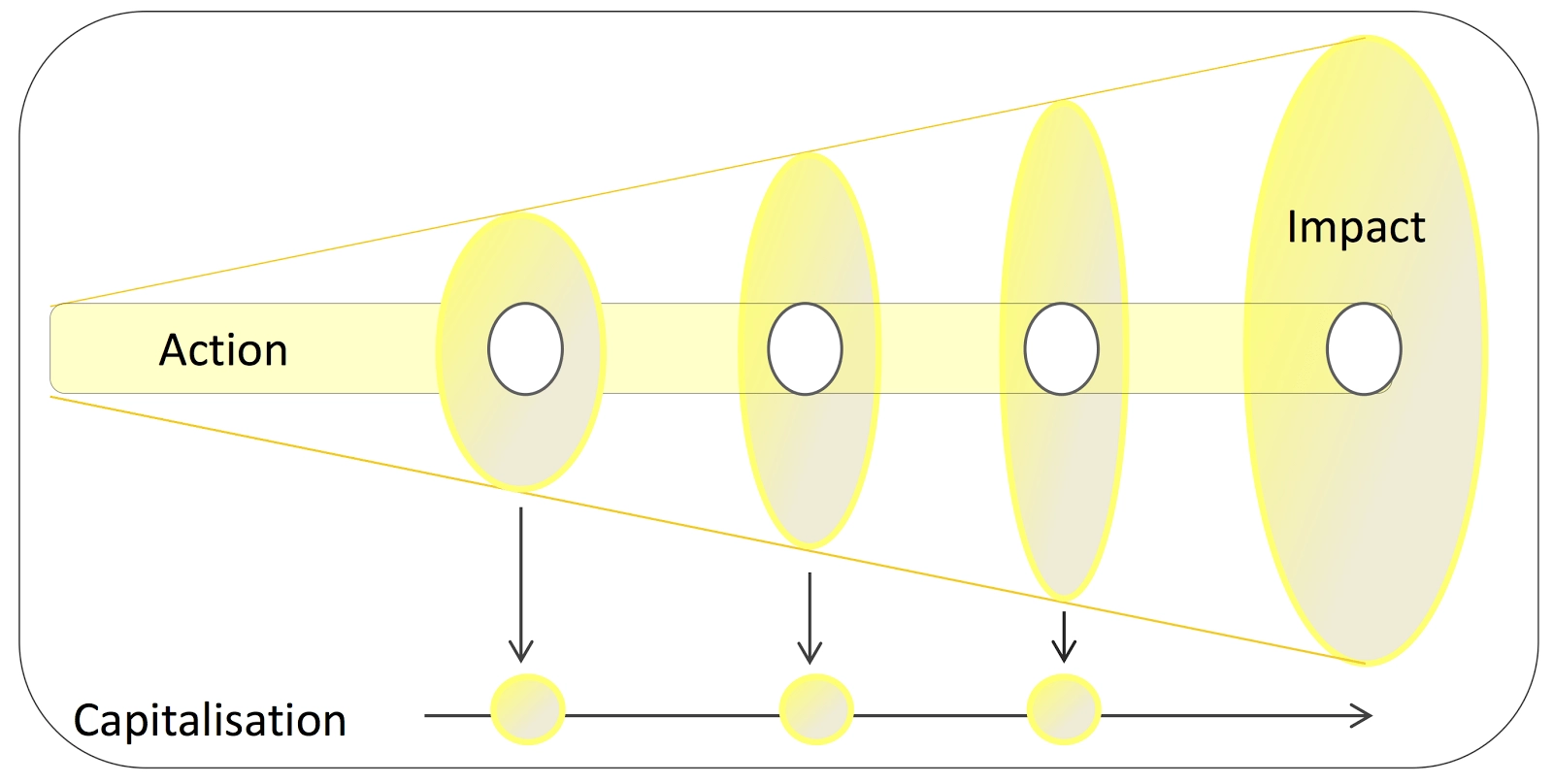 - Suivi-capitalisation : collecter et analyser régulièrement l’information utile pour agir et évaluer. Mémorisation et stockage de l’information à chaque étape. Nécessité de prendre du recul (observation, écoute, distanciation, environnement de l’action, conservation par écrit les éléments repérés).